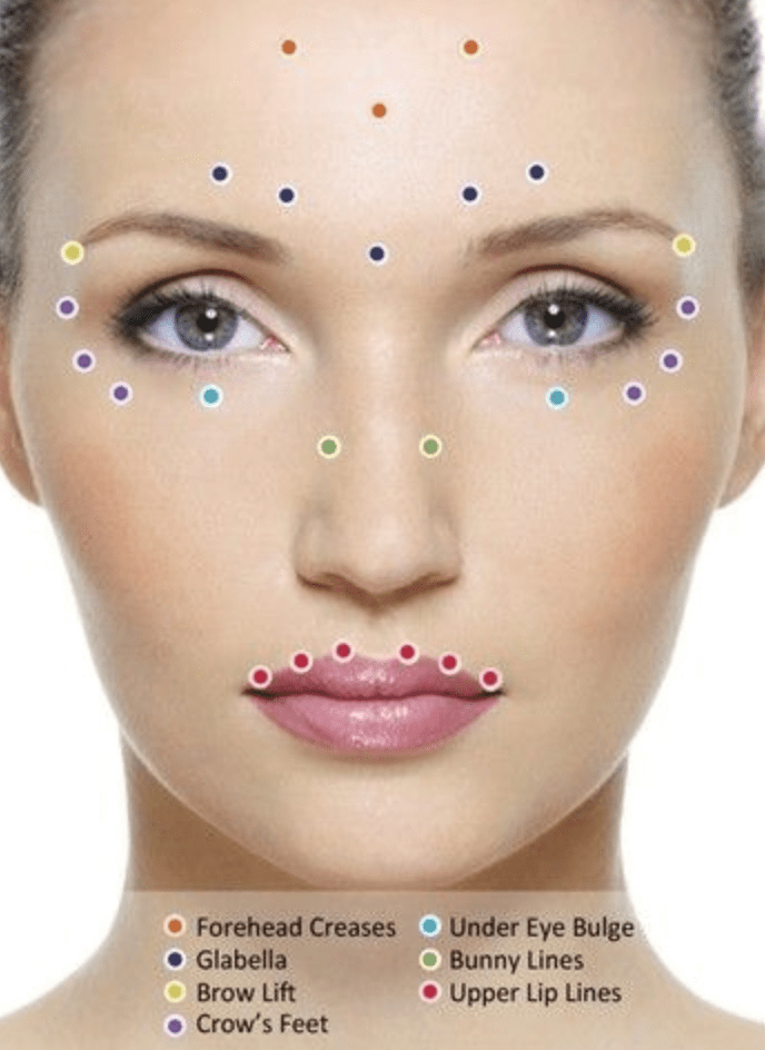 Il faudra environ une dizaine de points d’injection pour les rides horizontales du front, 5 à 7 points pour la ride du lion. Tandis que pour les rides pattes d’oie, le praticien aura besoin de 3 à 5 points d’injections pour chacune des zones.